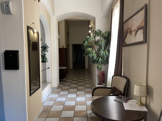 The hotel was chosen only for an overnight stay, because it was suitable for the ... More The hotel was chosen only for an overnight stay, because it was suitable for the price. Check-in until 11 pm, but we were late and the administrator called us to inform us that he was waiting for us. We were put in a room on the 3rd floor, but we saw that it was not cleaned there and returned to the administrator. Then we were offered another room which was bigger and clean. It was a two-room suite with a refrigerator and a large TV. The bed is quite comfortable, soundproofing is excellent.