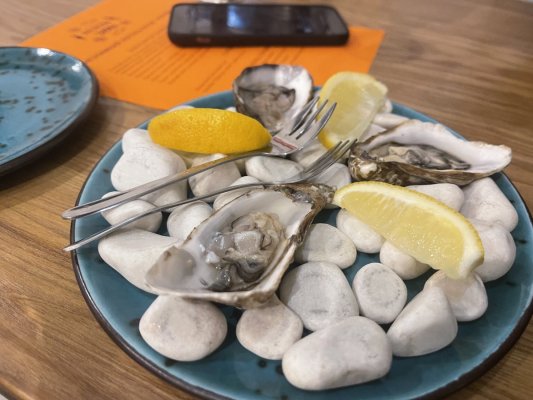 Сьогодні обіду в Анчосній на Софіївській Борщагівці. Світла не було, тому замовляли по скороченому меню. Не дуже складну картоплю з оселедцем та устриці. Все винесли ... More Сьогодні обіду в Анчосній на Софіївській Борщагівці. Світла не було, тому замовляли по скороченому меню. Не дуже складну картоплю з оселедцем та устриці. Все винесли швидко, все було смачно, особливо охолоджене бочкове просеко.